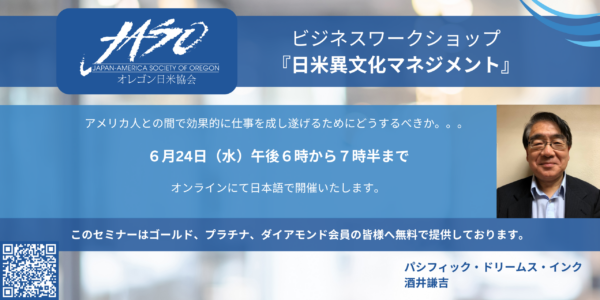 日米協会は全米の37州にある非営利団体です。オレゴン日米協会は1907年に設立され、アメリカで3番目に古い日米協会です。オレゴン州とワシントン州の南西地区を担当しており、現在、正規職員3名、150名以上のボランティアの方々、120の法人会員、800名以上の個人会員で構成されております。より良い日米関係を築いていくため、お互いの歴史、文化、慣習などを尊重しながら、現地でのビジネスのサポート、教育・文化交流などの活動を行ってきました。アメリカでは、寄付やボランティアをすることで地域社会の発展に貢献するという文化があり、多くの企業が様々な形で助け合っています。JASOでは日本企業様がスムーズに現地の地域社会へ溶け込めるようお手伝いをさせていただきます。