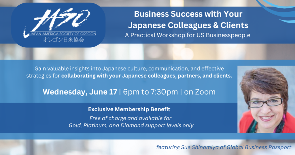Join us online for this 90-minute program to close the culture gap and learn strategies for business and social success when working with your Japanese counterparts. Available to you over Zoom locally, and to your company employees in other locations around the USA, free of charge.